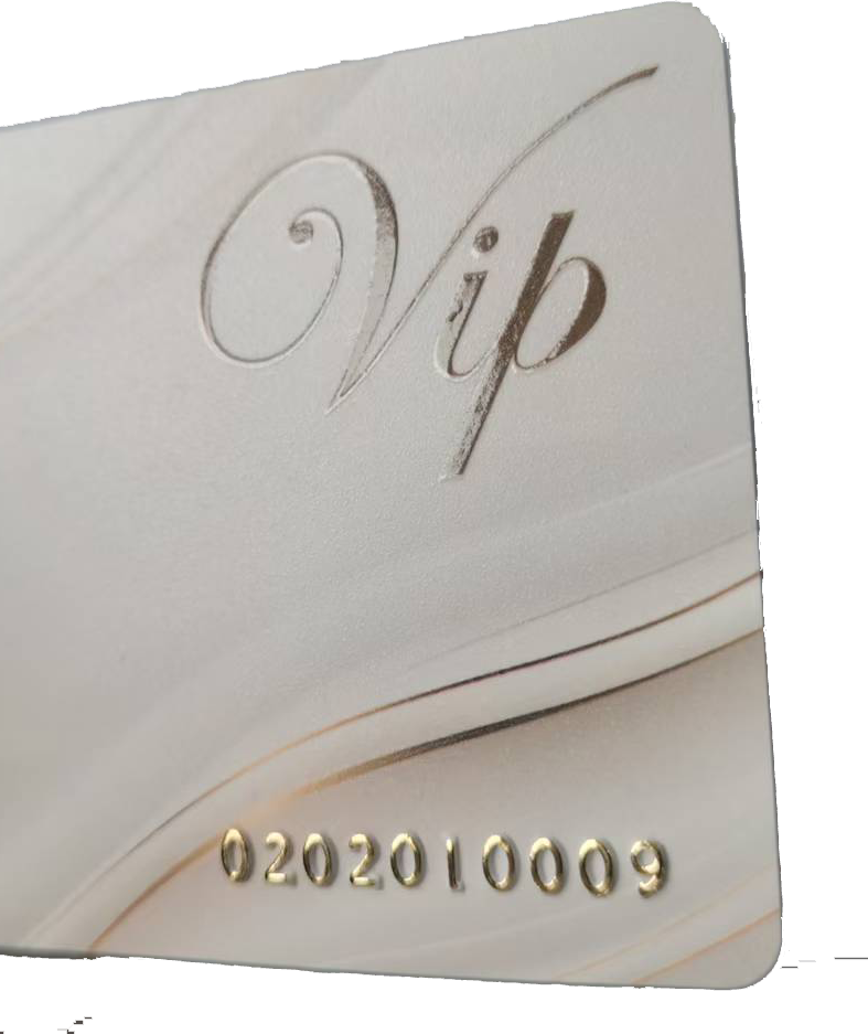实际样卡展示,正面小金凸编码和磨砂+uv工艺,背面条码+二维码: