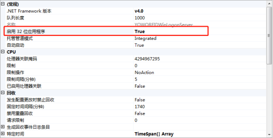 此处启动32位应用程序,一定要选择 True。
