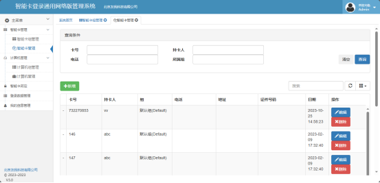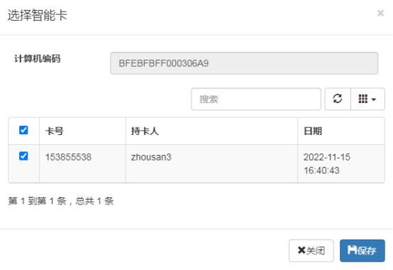 添加完成后,在智能卡管理界面有相应的智能卡列表: