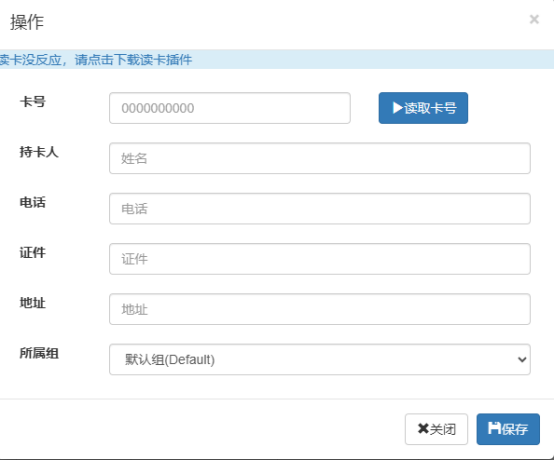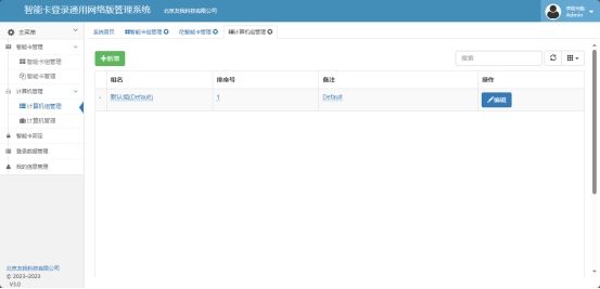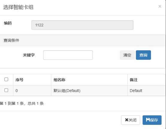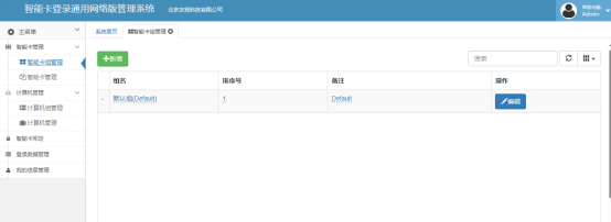 这个页面可以增加智能卡的分组,点击新增即可增加新的组,这个组只是为了方便智能卡的管理,例如可以为科室,班级,部门等。