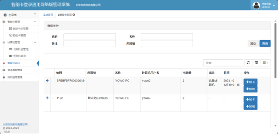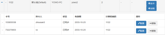 智能卡邦定界面显示所有的计算机列表,点击列表前面的+,可以显示当前计算机下邦定的所有的智能卡。