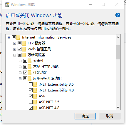 1.已经安装互联网信息服务(IIS)。IIS安装可以使用控制面板中程序-打开或关闭windows功能, 或者在cmd中输入OptionalFeatures