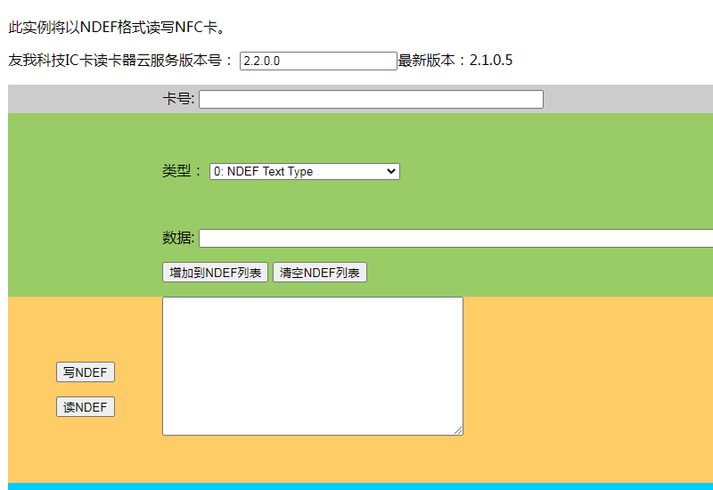 友我科技IC卡读卡器WEB插件系统支持NDEF格式的写入和读取,支持的卡有M1卡,NTAG等NFC标签。