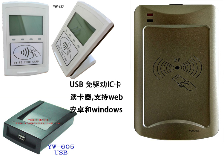 支持的发卡器有高频的发卡器,WY-605,YW-607,YW-627, UHF超高频的有YW-602H