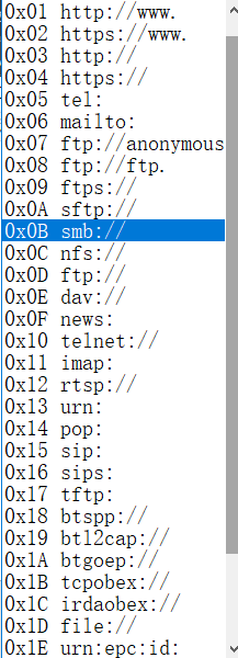 uri支持NFC Forum定义的多种格式,我们给出了默认的格式: