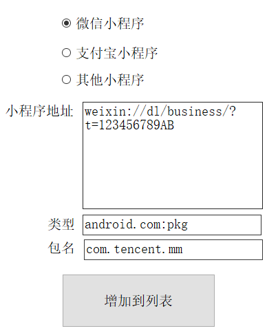 NFC工具提供了包括微信小程序,支付宝小程序和其他的小程序的写入格式,其中微信小程序和支付宝小程序的包名和类型已经写好,只需要修改小程序地址即可。