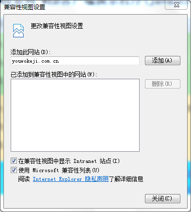 这种问题一般是由于兼容性问题导致,可以将当前域名增加到IE的兼容性视图列表中,兼容性视图设置在菜单工具里,打开后如下图所示: