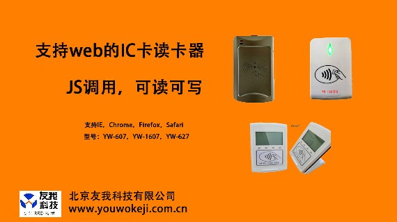 采用友我科技IC卡读卡器web插件可以对普通IC卡进行读和写操作,根据实际业务需求,可以手动点击读写和在web网页内自动读写.